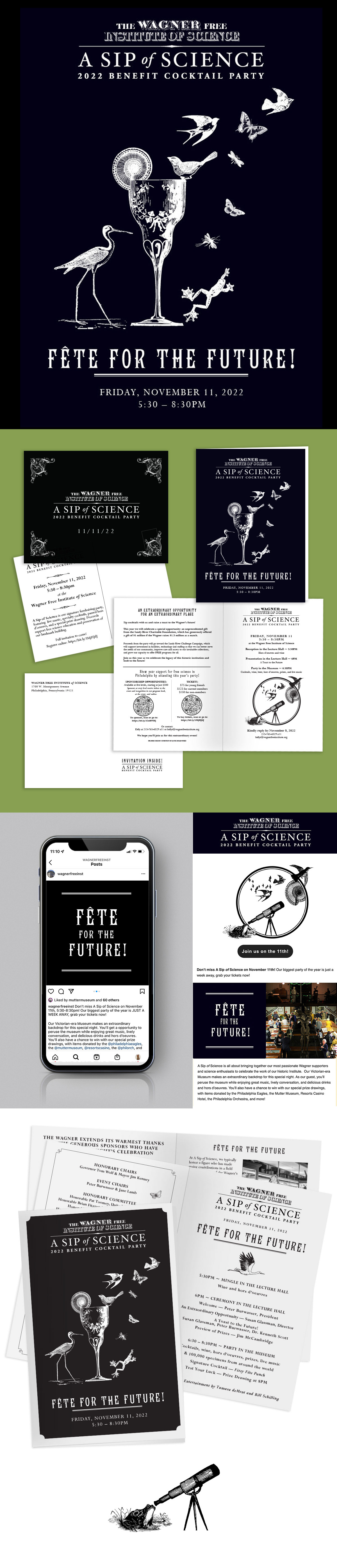 select print and digital assets including event logo, evite, printed invitation, email & social promotion and event program